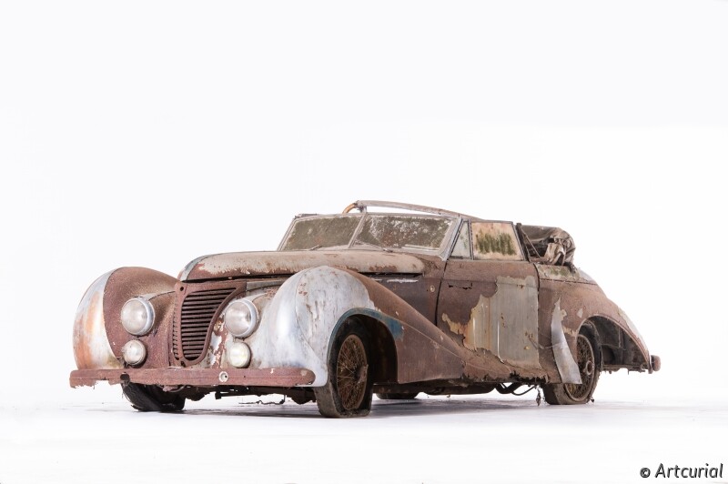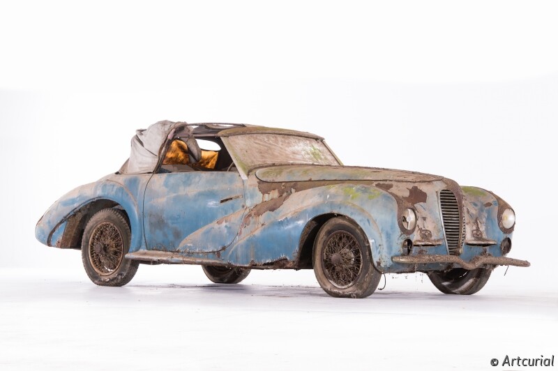 Bugatti, Hispano-Suiza, Talbot-Lago, Panhard-Levassor, Maserati, Ferrari, Delahaye, Delage...these legendary marquesmake up the extraordinary cache discovered by the Artcurial car department team, Matthieu Lamoure and Pierre Novikoff. Many of these cars were built by highly celebrated coachbuilders such as Million-Guiet, Chapron and Saoutchik, with a number of Talbot Lago T26sincluding a very rare Grand Sport Aérodynamiqueand a rather extravagant Cabrioletonce owned by King Farouk.