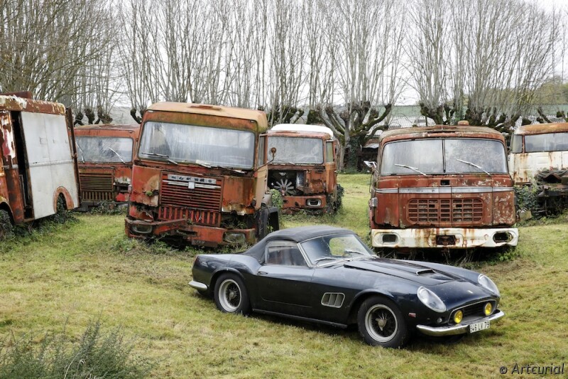 Sheltering in a garage, conserved in good condition, the two specialists came across one of just three Maserati A6G Gran Sportswith coachwork by Frua, dating from 1956. Beneath piles of newspapers, they discovered a Ferrari 250GT SWB California Spider, with covered headlights. It had been bought new by the actor Gérard Blain, then sold to fellow actor Alain Delon, who was photographed several times at the wheel of this machine, including in 1964 with Jane Fondaduring the filming of ‘Les Félins’ and on the Côte d’Azur with Shirley MacLaine. One of 37 examples, this Pininfarina-designed cabriolet, its whereabouts unknown to marque historians until now, is bound to attract the attention of collectors of important historic Ferrari.