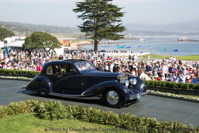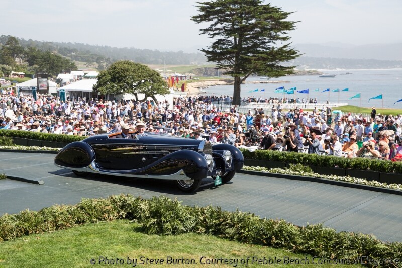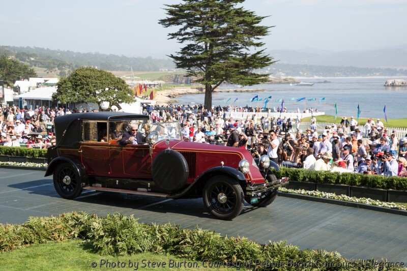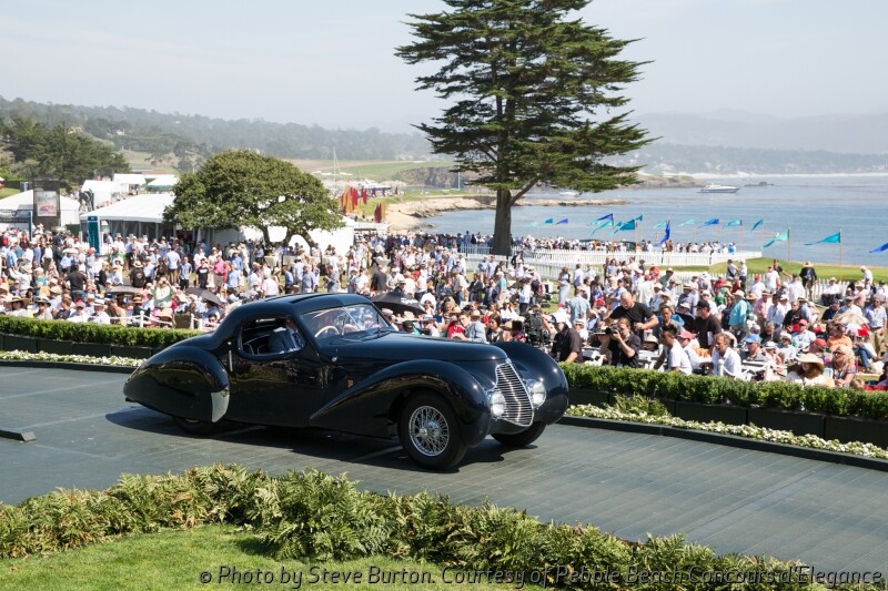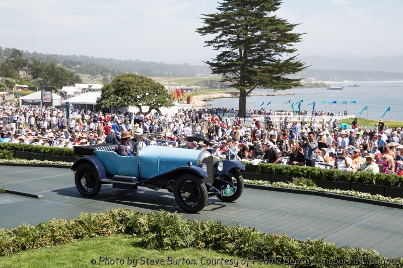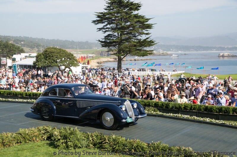 The competition drew 219 cars from 16 countries and 29 states to the 18th fairway of Pebble Beach Golf Links. The winning car has an extremely long 145-inch Italian 1924 Tipo 8A chassis, which was acquired in the early 1930s by Swiss Carrosserie Worblaufen to be used as the basis for a new sport cabriolet. The finished car was displayed at the 1932 Geneva Auto Show and won the Grand-Prix d’Honneur at Cannes in 1933. After being shown, the car passed through the hands of just three owners prior to being purchased by current owner Jim Patterson of Louisville, Kentucky.