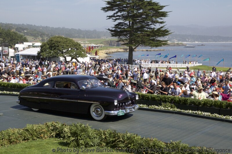 Ferraris were featured in great numbers this year, along with classic era duPonts, antique Popes, British prewar sports cars and postwar Cunninghams. Special classes celebrated the 50th anniversary of the Shelby GT350 and the 75th anniversary of the Lincoln Continental, and Mercury Customs were displayed for the first time.