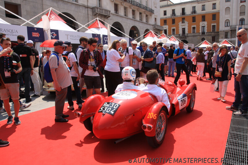 Among those chosen, the most represented brand is Alfa Romeo with 46 cars (chosen from 72 entries), followed by Fiat with 36 (out of 61 entries) and two other houses with 35: Lancia (54) and Mercedes-Benz (49). Following on, there are Bugatti with 23 (all entries) and Jaguar with 21 (47), the same as Porsche (35); the Ferraris lined up at the start will be 15 (out of 17 entries), 14 Aston Martins (34), 13 O.M.s (Of course, all cars of this brand, built in Brescia, have been accepted), 12 BMWs and 11 Maseratis. The starting line-up is completed by other brands, for a total of 82 Manufacturers.