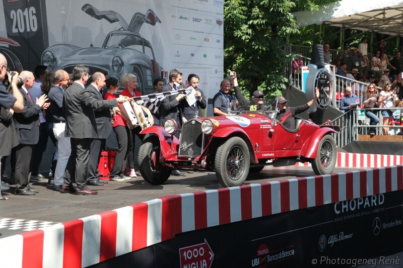 Andrea Vesco and Andrea Guerini with 51,542 points, driving an Alfa Romeo 6C 1750 GS Zagato of 1931, are the winners of the Mille Miglia 2016. After 1800 km of road, Vesco and Guerini are imposed in this revival of the Freccia Rossa, ahead in the ranking Luca Patron and Elena Scaramuzzi, came in second place, on an OM 665 Superba Sports 2000 cc of 1926, with 50,088 points, and Giordano Mozzi and Stefania Biacca who won the third place on board an Alfa Romeo 6C 1500 Gran Sport of 1933 sn: 10814406 (Zagato), with 49,262 points. This car was alredy counted among the AUTOMOTIVE MASTERPIECES, raced the Mille Miglia in 1934 and 1936 and it is one of the just 18 "Testa Fissa".